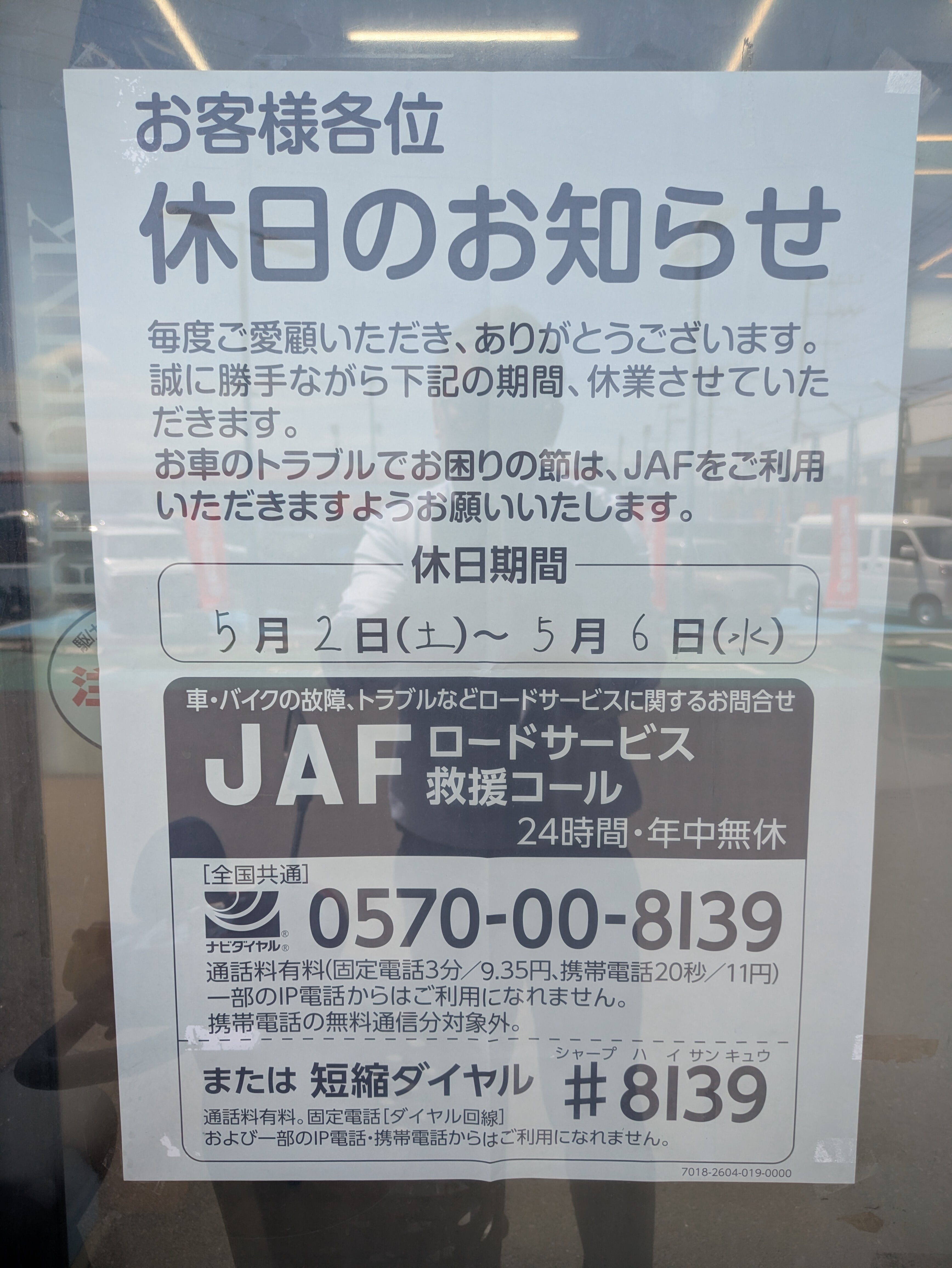 その他 2026.04.27 5月GW休暇のご案内 いつも当店ブログをごらんいただき誠にありがとうございます。 皆様GWのご予定はおきまりでしょうか? 本日は、5月GW休暇についてご案内致します。 当店ですが、5月2日(土)から5月6日(水)まで、休暇をいただきます。 緊急の場合は、 ▼JAF 0570-00-8139 #8139 ▼各種任意保険 いずれかにご連絡をお願いいたします。 ご迷惑をおかけしますが、ご理解、ご協力をお願いいたします。 尚。5月7日(木)は通常通り、朝10:00より営業致します。