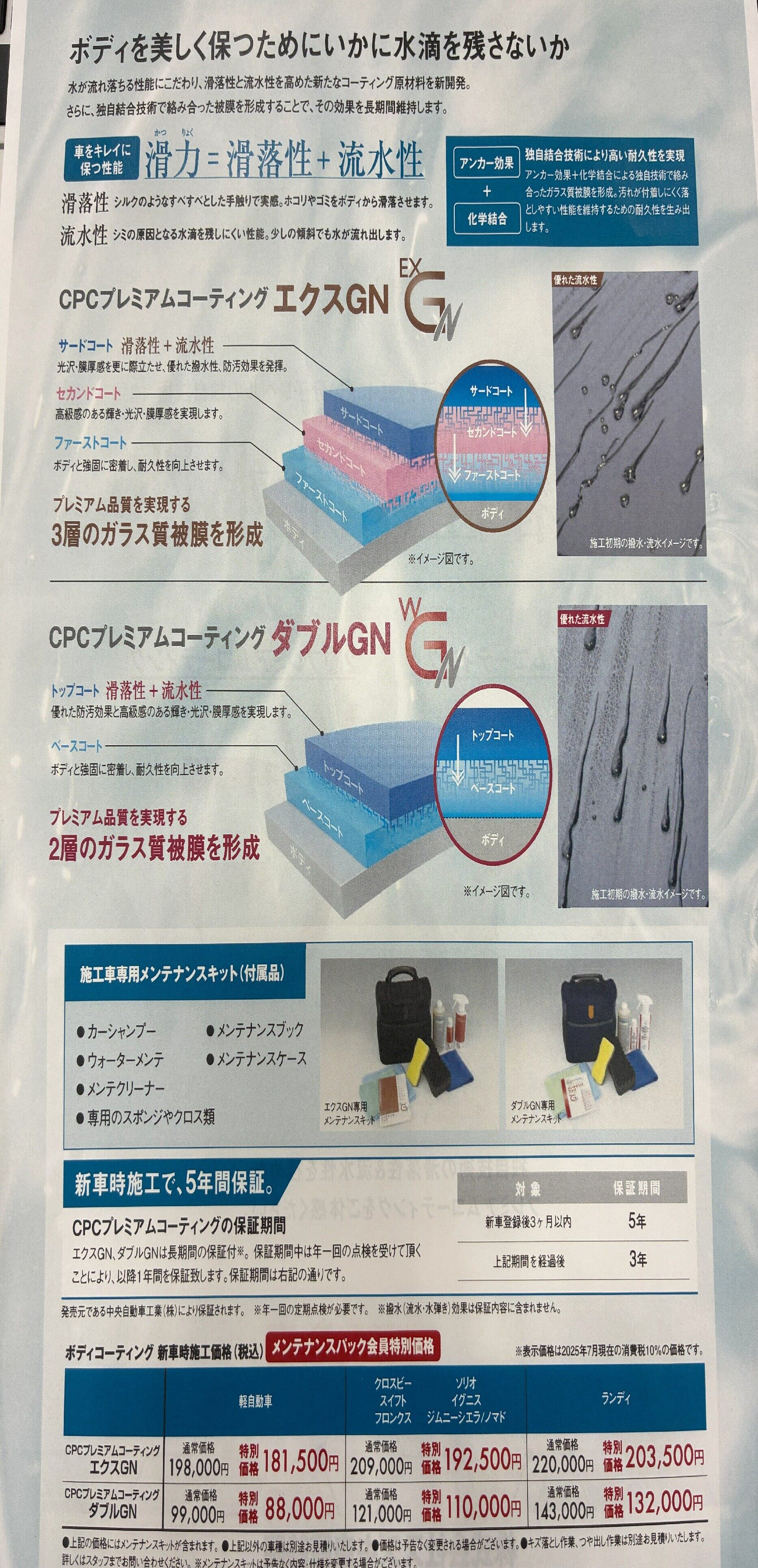さらに、専用メンテナンスキット付きで新車施工なら5年間保証も付いているので安心です