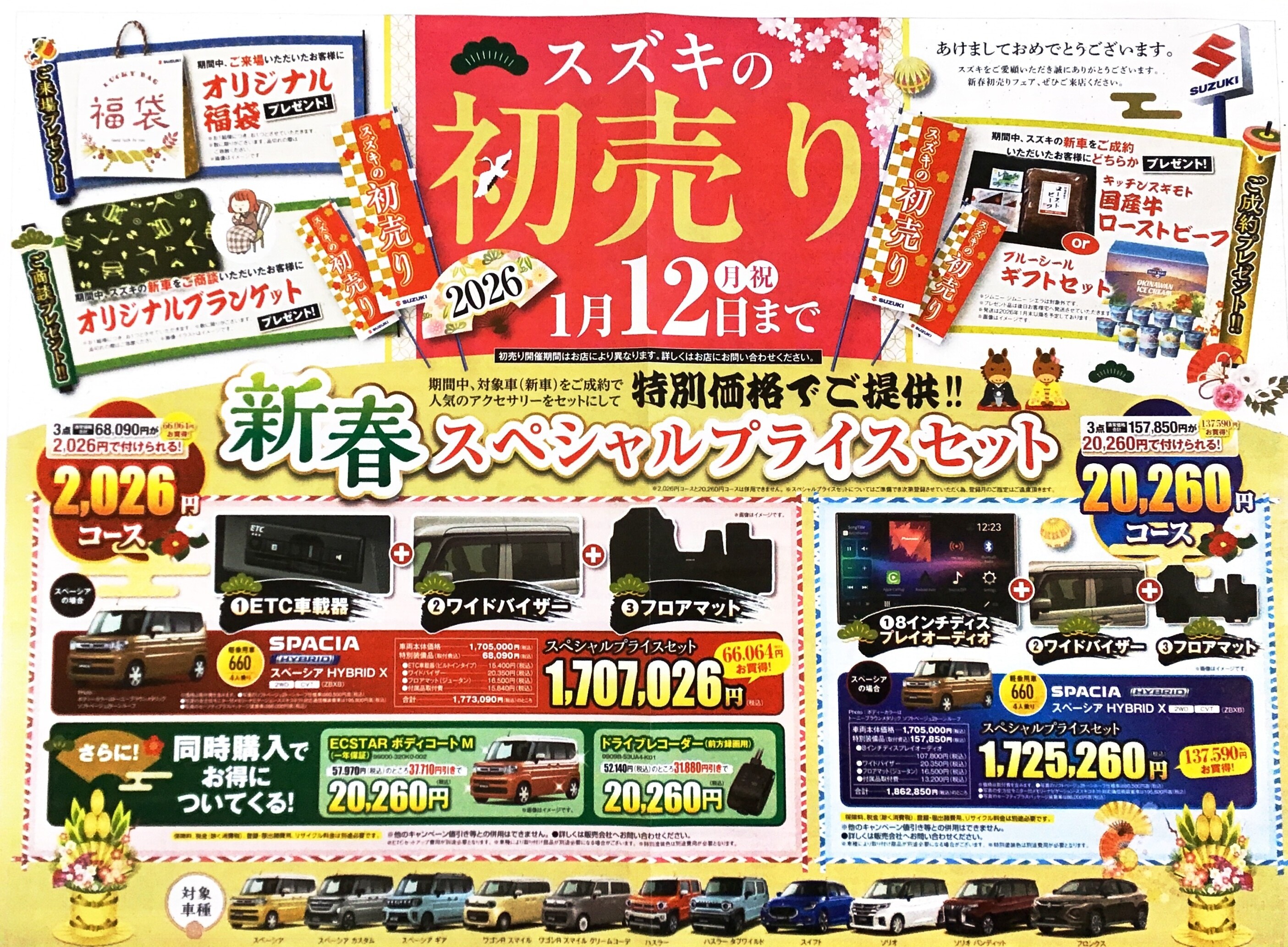 1月4日(日)より1月12日(月・祝)まで「スズキの初売り」を開催いたします