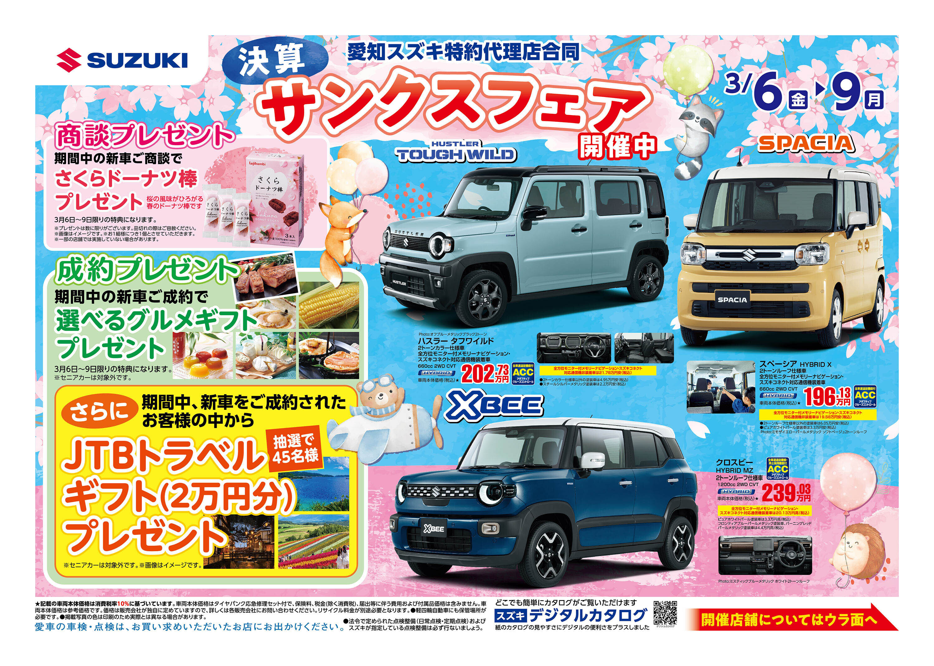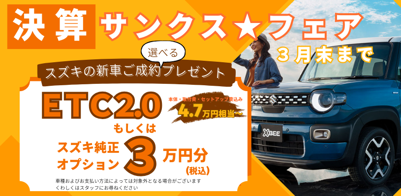 イベント/キャンペーン 2026.03.03 サンクス☆フェア開催中ーーー☆ こんにちは 営業のこんどうです もう3月ですね(早いですね) 3月末までサンクスフェア開催中です また3月6日(金)~9日(月)まで 愛知スズキ特約店合同イベントも 同時開催します たくさんのご来店お待ちしております~
