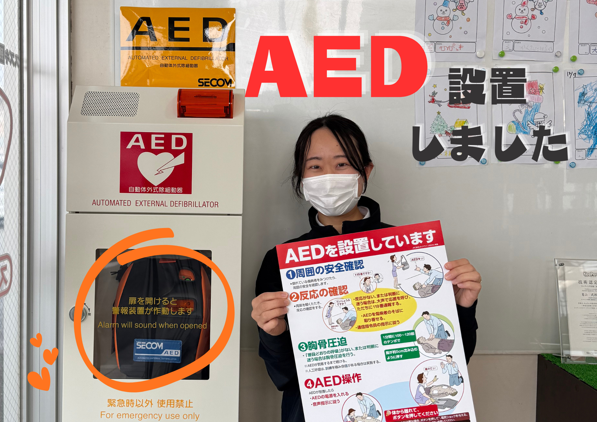 7月に参加したAED研修をきっかけに、店内にAEDを設置しました!