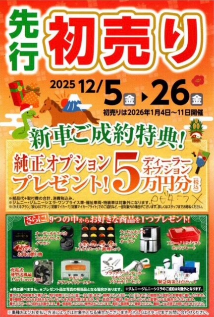 今年は「キャリイトラック」「エブリイ」等の商用車も初売りの対象となっております
