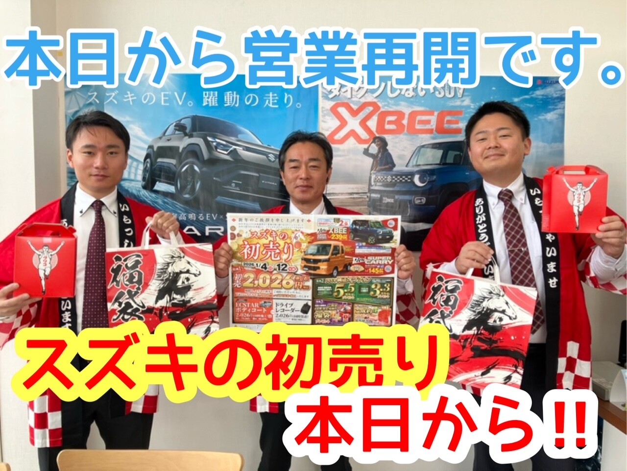 本日から営業再開です!!初売り本日からです!!