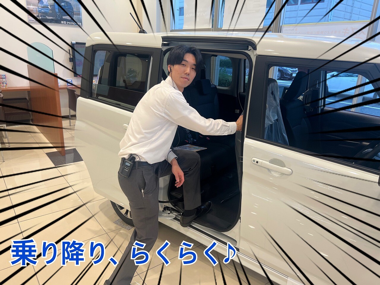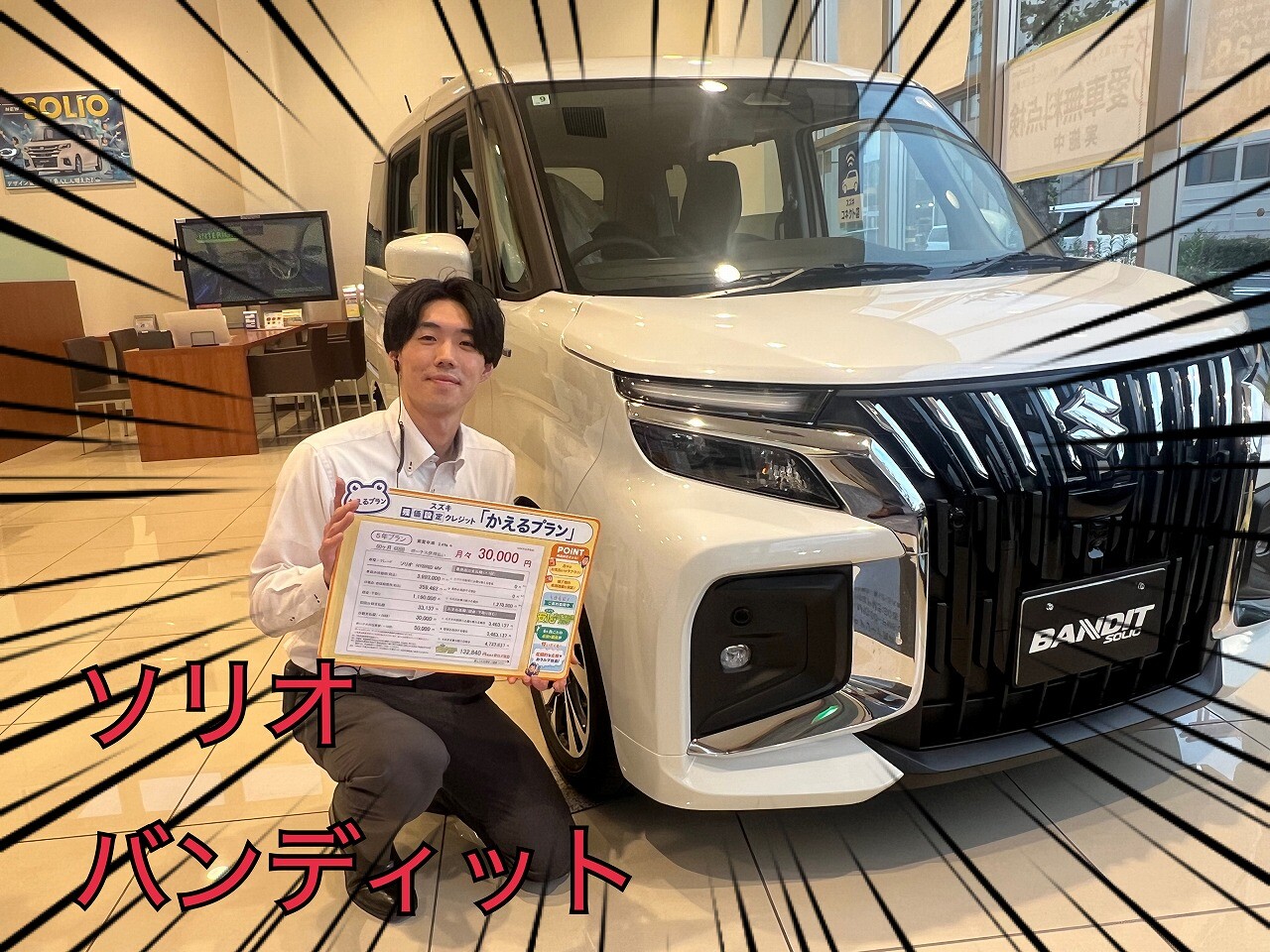 イベントデー 2025.10.12 きましたっ!! ついにきました!ソリオバンディットの展示車 見てください、迫力あるグリル 乗り降り、らくらくなスライドドア スリムサーキュレーターがあって、後部座席も快適 全方位カメラも付いていて、これで駐車も安心ですね 明日もまだまだ、アウトドアフェア開催中です ご来店お待ちしております