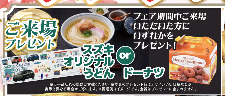 スズキオリジナルうどん or ドーナツ をプレゼント!!