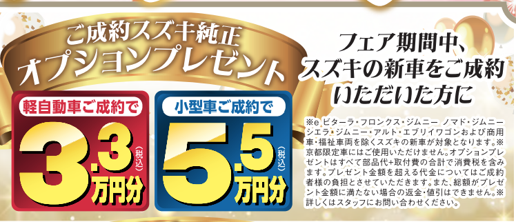 また・・・期間中、新車をご成約の方に