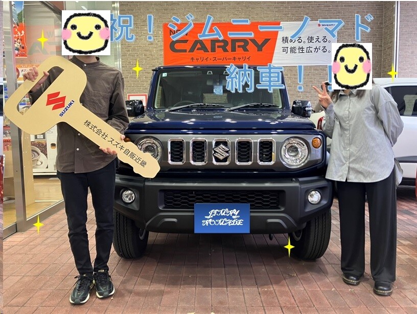 納車ギャラリー 2026.04.04 ジムニーノマド ご納車させていただきました。 愛車 ジムニー ノマド お客様 M様 グレード FC ボディーカラー セレスティアブルーパール この度ジムニーノマドをご納車させていただきました!! ノマドを選ばれた理由は 妻の強い願望!! ということでした! 実際のノマドを見て頂き、カッコよさを改めて感じて頂けたようでよかったです! ボディーコートに加え樹脂部分のコーティングも実施済みで、光沢があります。 これからもお子様と一緒にノマドでいろいろな思い出を作っていただけますと幸いです。 今後ともよろしくお願いいたします。