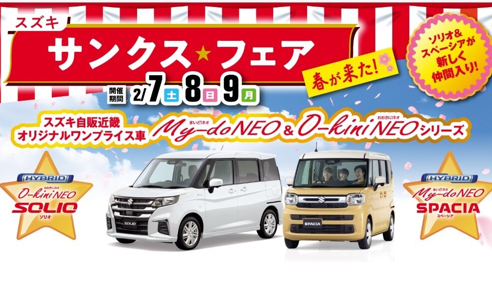2月7日(土)~2月9日(月)でスズキ サンクスフェア開催です。