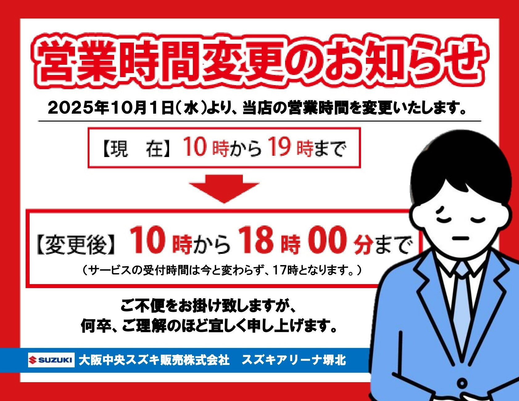 平素よりスズキアリーナ堺北をご愛顧いただき、誠にありがとうございます。