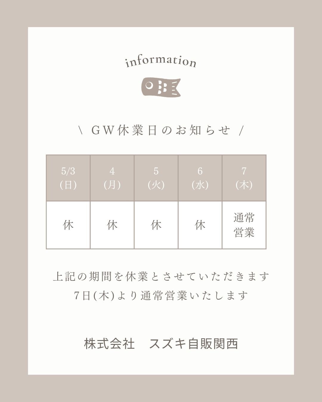 日頃はスズキ自販関西スズキアリーナ守口をご愛顧賜りありがとうございます。