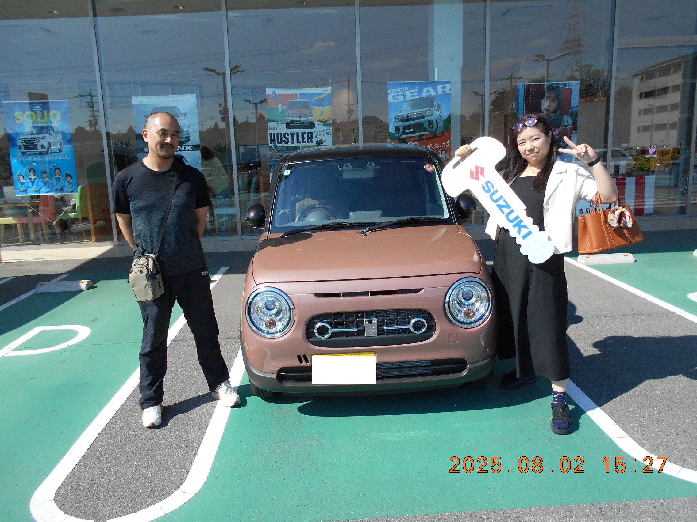 納車ギャラリー 2025.09.27 ご納車おめでとうございます!! 愛車 ラパン LC お客様 H様 グレード X ボディーカラー テラコッタピンクメタリック ブラウン2トーン H様 この度はラパンLCのご納車誠におめでとうございます!! お二人とも非常に明るく気さくに接してくださったので会うたびに元気をいただいてました! メンテナンスパックを当店でご加入いただいておりますのでこれからお客様のカーライフをしっかりサポートさせて頂きます! お車のことでお困りごと・ご相談等ございましたらいつでもお尋ねください! 今後ともよろしくお願いいたします!!