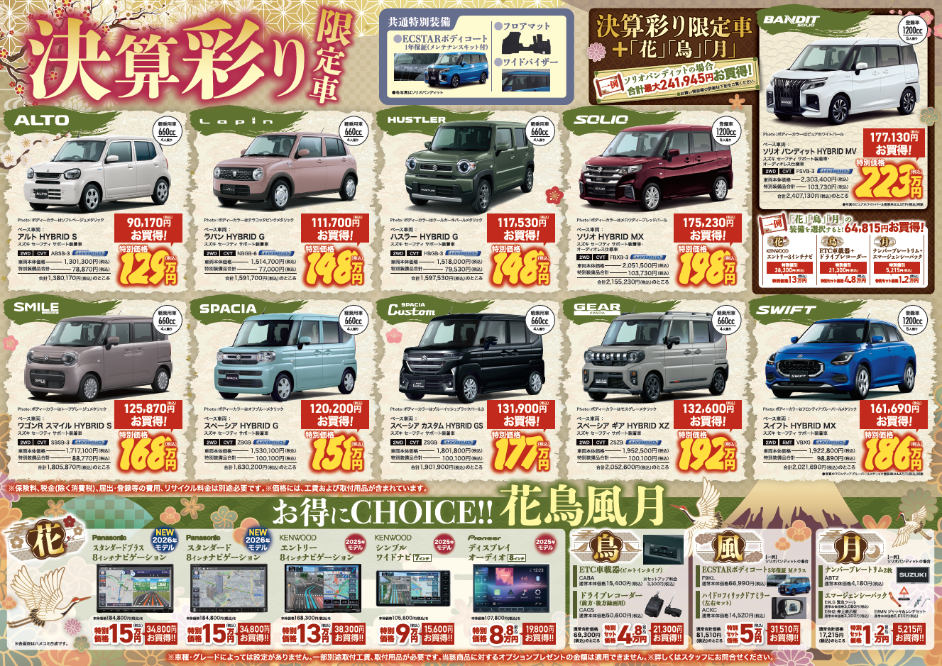 その他 2026.03.19 大決算フェアです!! いつもスズキアリーナ神戸上沢店の ブログをご覧いただきまして、 誠にありがとうございます 明日から3連休ですね みなさまいかがお過ごしでしょうか。 3月20日,21日,22日 大決算フェア 実施中です お得な限定車! (ボディカラー選べます) さらにお得な花鳥風月! さらにさらに、 かえるプラン金利2.9%も 3月31日まで!!! お得なこの機会に、 ご来店お待ちしております
