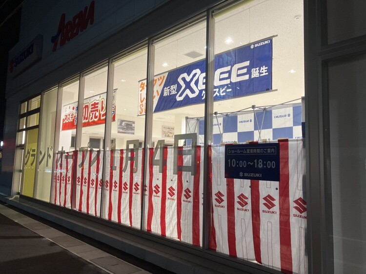 イベント/キャンペーン 2025.12.17 いよいよ明日!【プレオープンまであと1日】 みなさまこんにちは! スズキアリーナ姫路東 ついにプレオープンまで残り1日となりました! 今日も店内の様子をチラ見せしちゃいます 大きなバルーンアーチを設置しました! 高さは2.6m! 窓には紅白幕 ちらっと横幕が見えますが、先行初売りも開催中です 当日はスズキのグッズも販売予定ですよ お楽しみに~ お待ちかねのプレオープン 2025年12月18日 10:00より開店いたします! 皆様のご来店を心よりお待ちしております