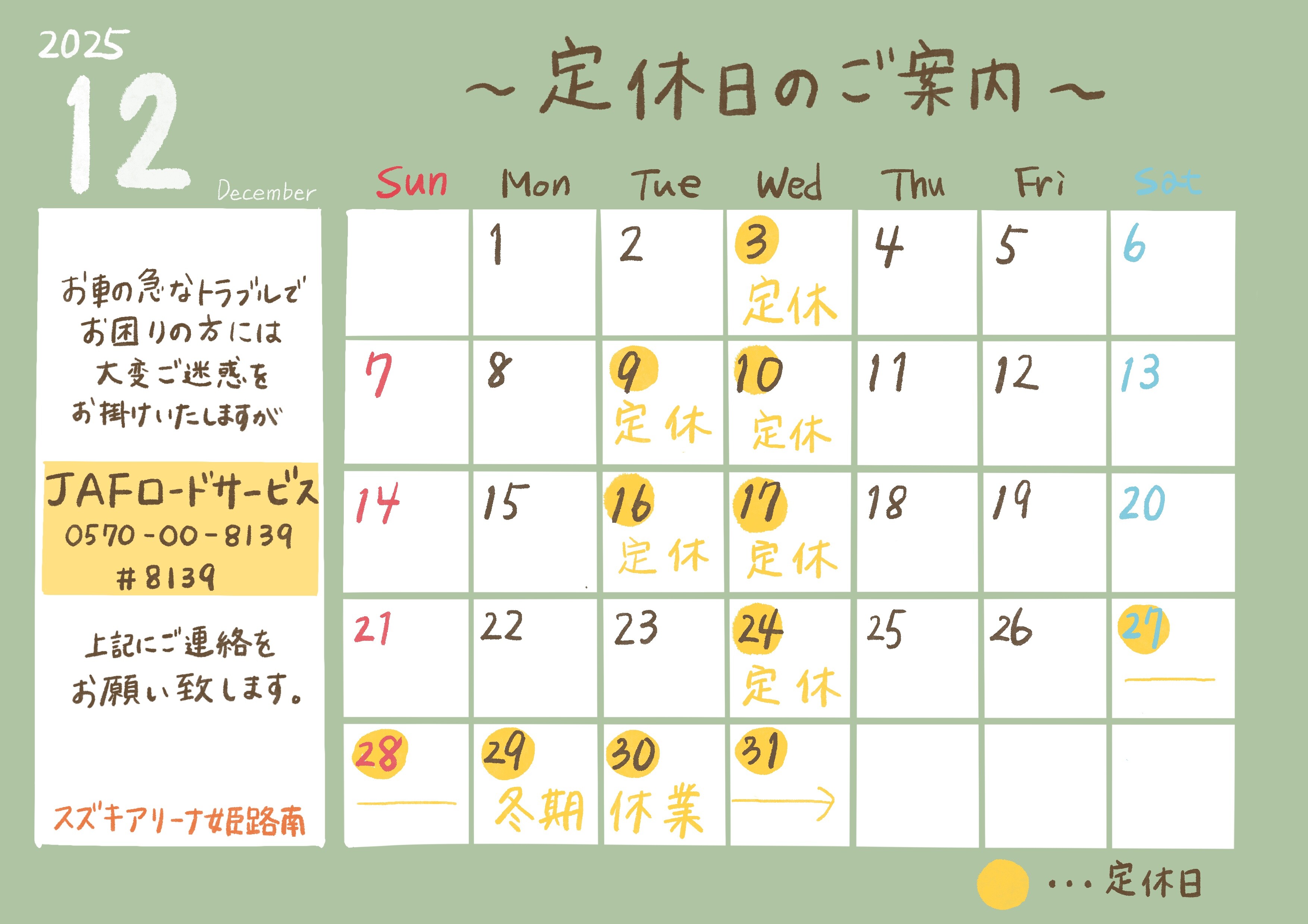 ~定休日のご案内~