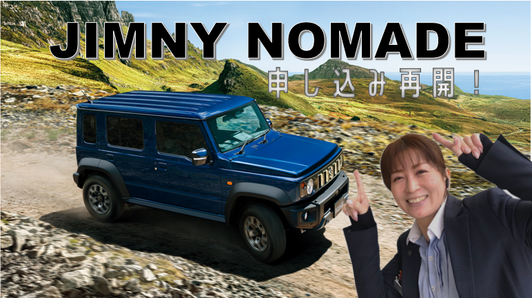 新車情報 2026.01.30 ジムニーノマドご注文受付開始! お待たせしました! お問合せをたくさんいただいておりました ジムニーノマド 本日よりご注文受付再開です 本日より2月28日までをお申込み期間とし、 納車順を決めるための抽選を行います。 ▼ジムニーノマド受注再開についてのご案内▼ https://www.suzuki.co.jp/car/notification/jimny_nomade/ すでにたくさんのお客様に ご来店いただいております! 抽選なので慌てることはないですが まずはお申込みいただきますよう ご来店をお待ちしております