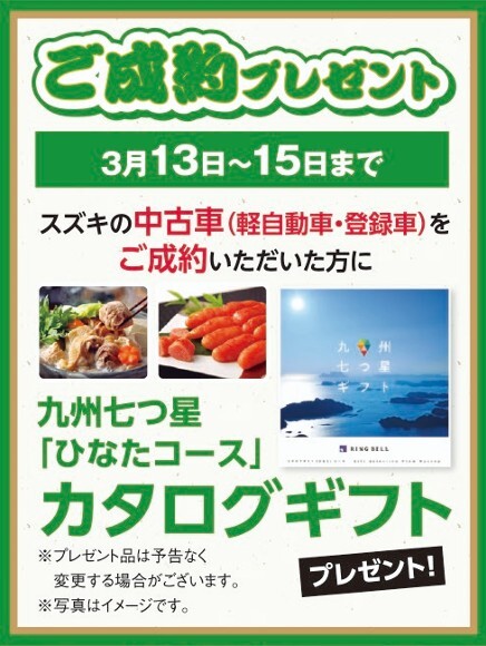 期間中、スズキの中古車をご成約いただき