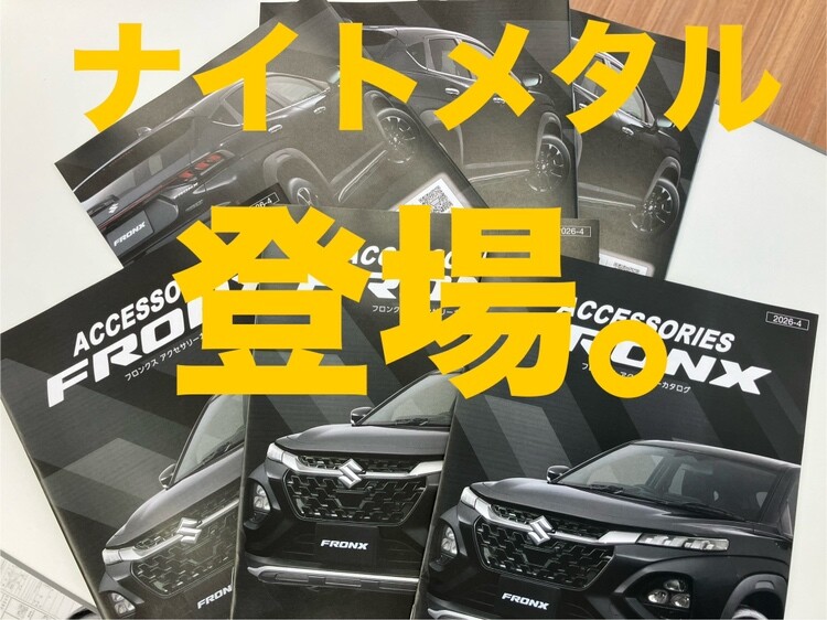 その他 2026.04.10 ☆イメチェンのフロンクス☆ フロンクスの純正アクセサリーに 「ナイトメタル」 登場 ・フロントアンダーガーニッシュ ・リヤアンダーガーニッシュ ・サイドアンダーガーニッシュ ・アルミホイール 立体感のある造形が光の加減で美しい陰影を生み出します。 オプションパーツで 一味違ったフロンクスをお楽しみください 過去にあったコンセプトカー 「シーバス・ナイト・ゲーム」に取り付けられていた パーツをモチーフにしたそうですよ