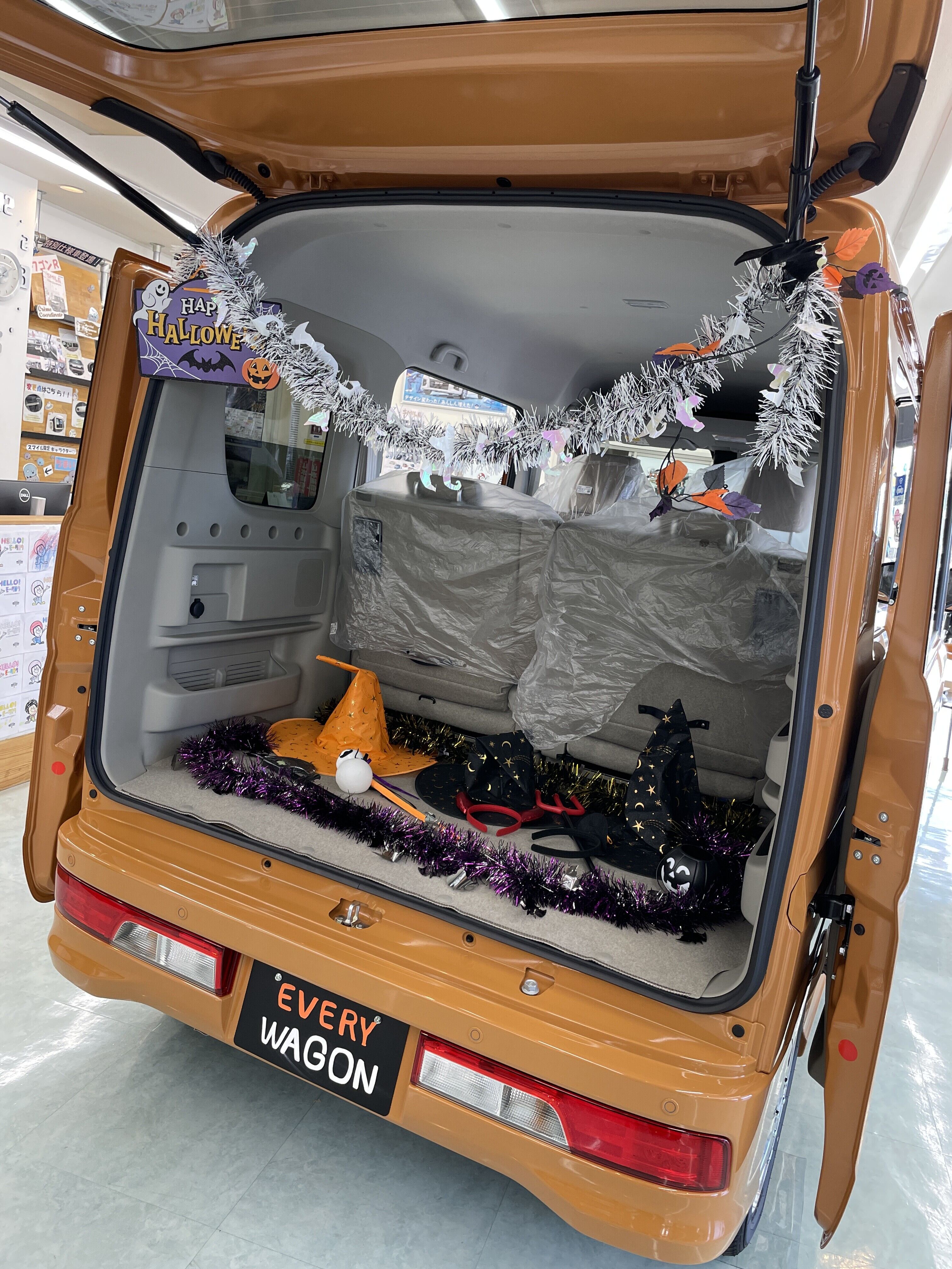 ちょうどオレンジ色のエブリイワゴンを展示していたので、