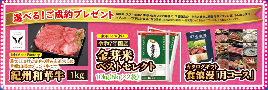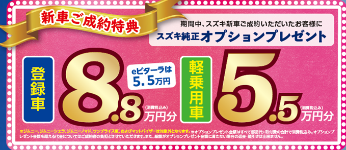 期間中にスズキ新車のご成約をいただいたお客様に
