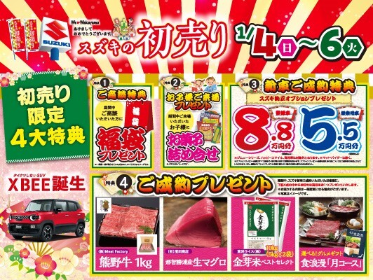 【お知らせ】スズキの初売り!!初売り限定4大特典!!【第1弾は1/4~1/6】