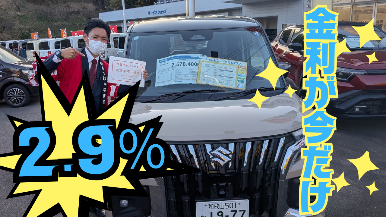 イベント/キャンペーン 2026.03.18 【週末展示会】3月まで!!金利が今お得です!!【3/20~3/23】 ※このイベントは終了しました お世話になっております。 アリーナ上富田店です。 そろそろ桜の開花の時期ですかね だいぶ暖かくなってきましたが、夜は少し寒いですね 寒暖差に気を付けてくださいませ(^^)/ さてそんな今日この頃… お店では週末展示会を行います!! スズキのクルマがお得な金利で買えるキャンペーン中です 4月からは金利があがります… これが最後のチャンスです… また上富田に期間限定で 電気自動車のeVITARAが来ています!! このチャンスを逃さないためにも この週末はスズキへとご来店くださいませ!!