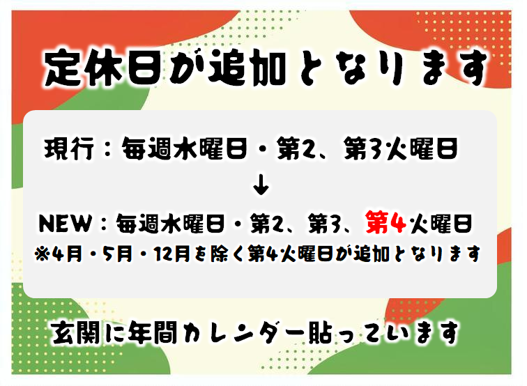 ~定休日が追加となります~