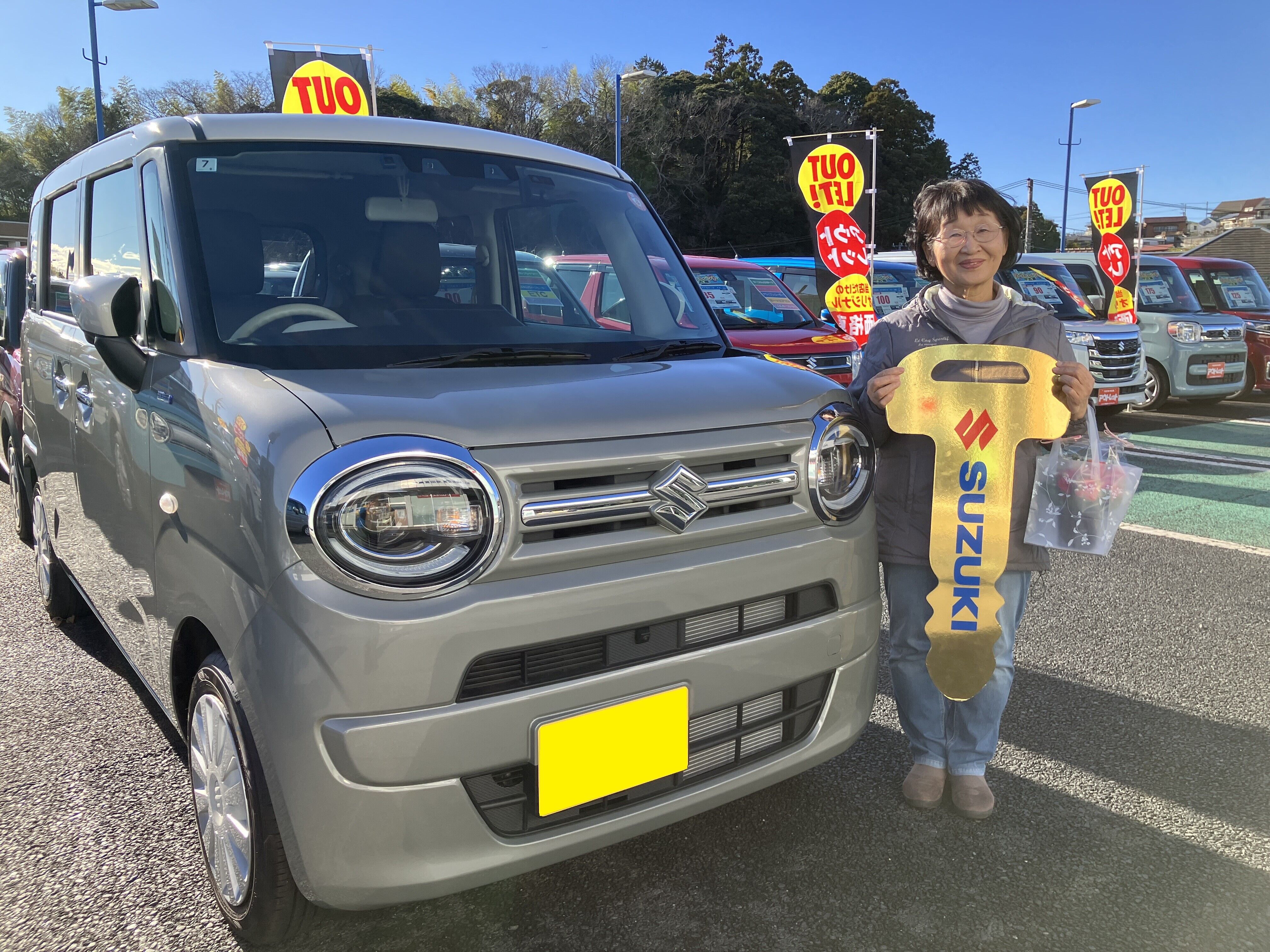 納車ギャラリー 2026.01.15 ご納車おめでとうございます! 愛車 ワゴンR スマイル お客様 H様 グレード HYBRID Sリミテッド 2型 ボディーカラー モスグレーメタリック ベージュ2トーン この度はご納車おめでとうございます お忙しいところお越しいただきありがとうございます 今回のお車はスライドドア車でとても使いやすいく、 低燃費でとってもかわいいお車です 今後も末永くご利用いただければ幸いです この後初期点検もございますので 何卒宜しくお願い致します