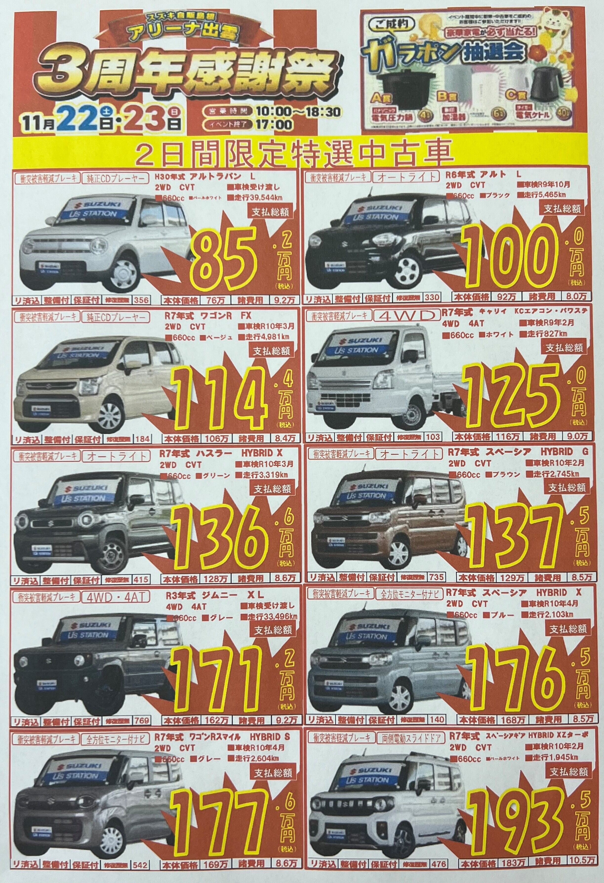 アリーナ出雲3周年感謝祭情報!!