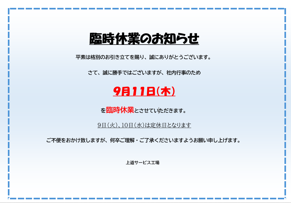 本日は臨時休業のお知らせです