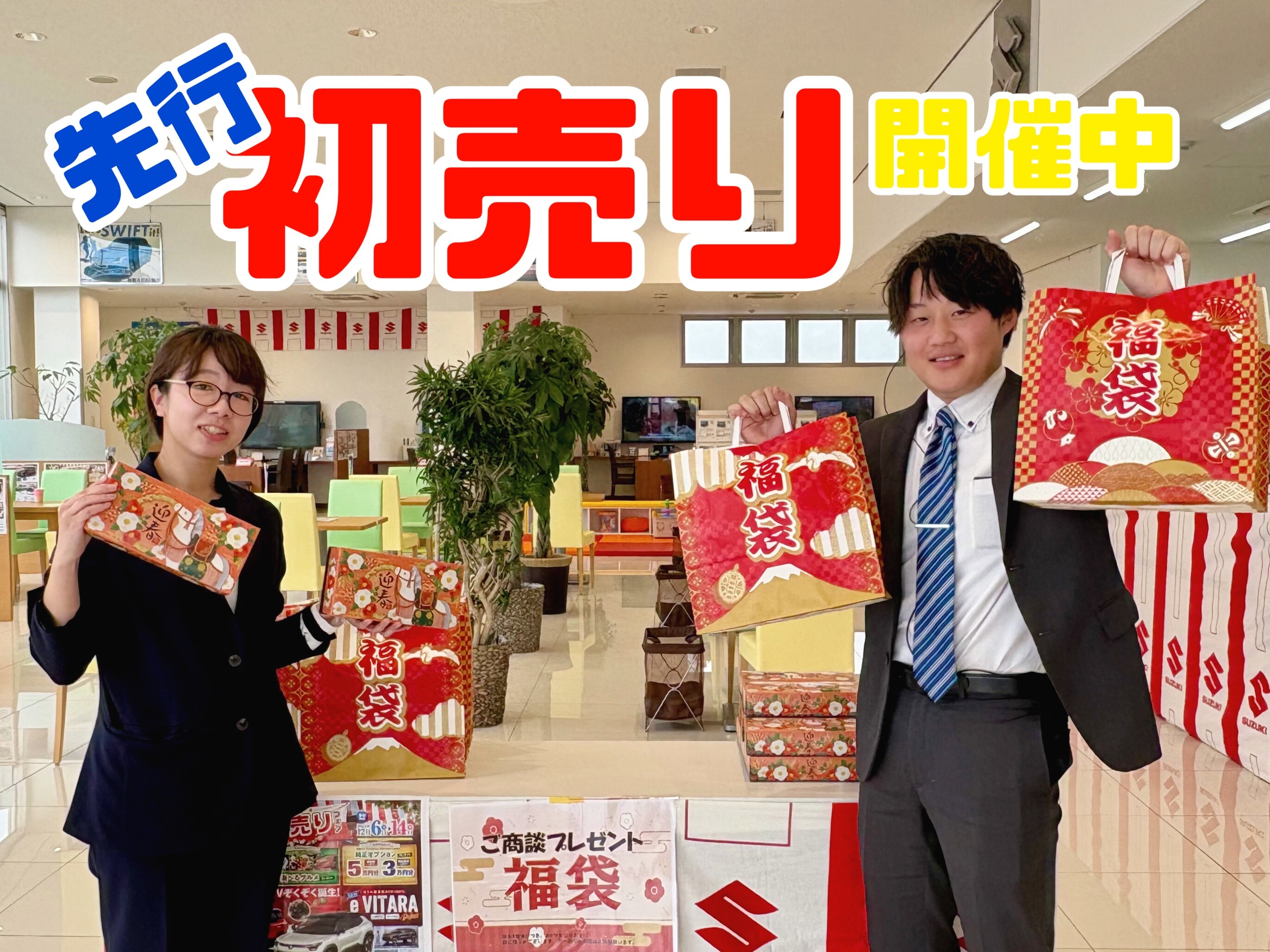 イベント/キャンペーン 2025.12.08 スズキ先行初売りフェア開催中 キャンペーン期間:2025.12.06~2025.12.14 こんにちは いつもスズキアリーナ西岡山のブログをご覧頂き ありがとうございます ただいまスズキアリーナ西岡山では 先行初売りフェア を開催中です 店内の様子はこんな感じに すっかり年末年始の雰囲気になりました オプションプレゼントや 豪華成約プレゼントもありますので 気になるお車がある方は この機会をお見逃しなく みなさまのご来店お待ちしております