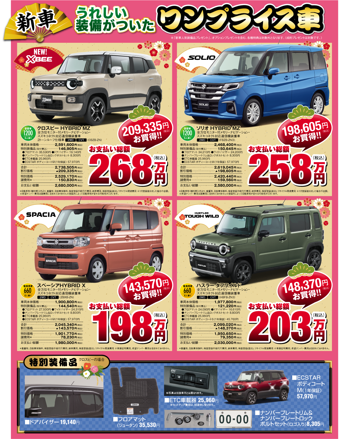 イベント/キャンペーン 2025.12.26 【1月4日〜1月12日】『スズキの初売り』開催します!!! ※このイベントは終了しました こんにちは! いつも大福店のブログをご覧いただき ありがとうございます 今年度もスズキの初売り開催いたします! 期間:1月4日(日)~1月12日(月) プレゼント&お得な情報が盛りだくさんです! 新車ワンプライス車あります! ご来場プレゼント:干支ティッシュ ご商談プレゼント:福バッグ ご成約プレゼント①:選べるグルメ ご成約プレゼント②:純正オプションプレゼント ご成約Wチャンス!!! 試乗等ご予約はこちらまで 086-282-8811 皆様のご来店 心よりお待ちしております