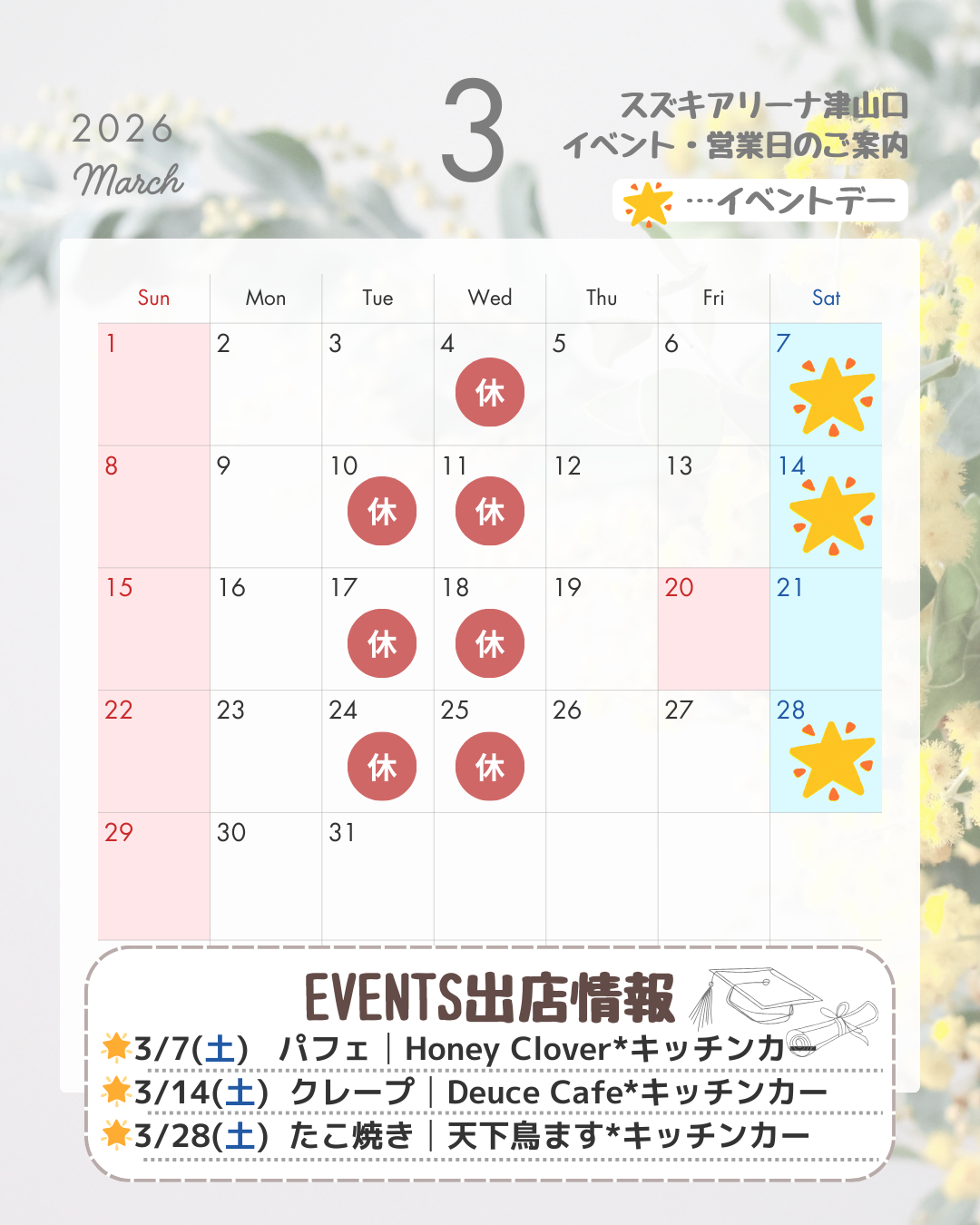 3月もすでにイベントが決定しています