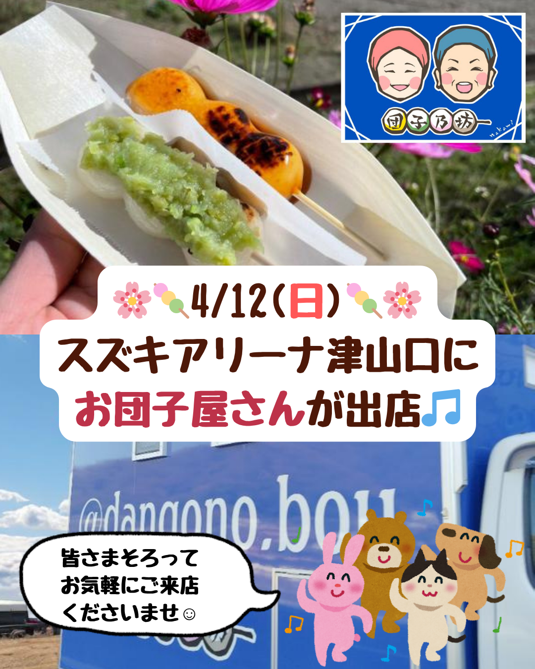 今週末はイベントあり♪お団子屋さん出店&スズキ初の電気自動車展示会☆