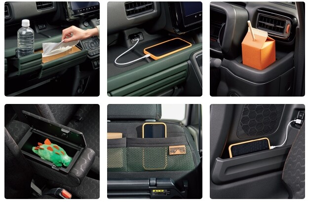 車内の至るところに収納を多数配置。