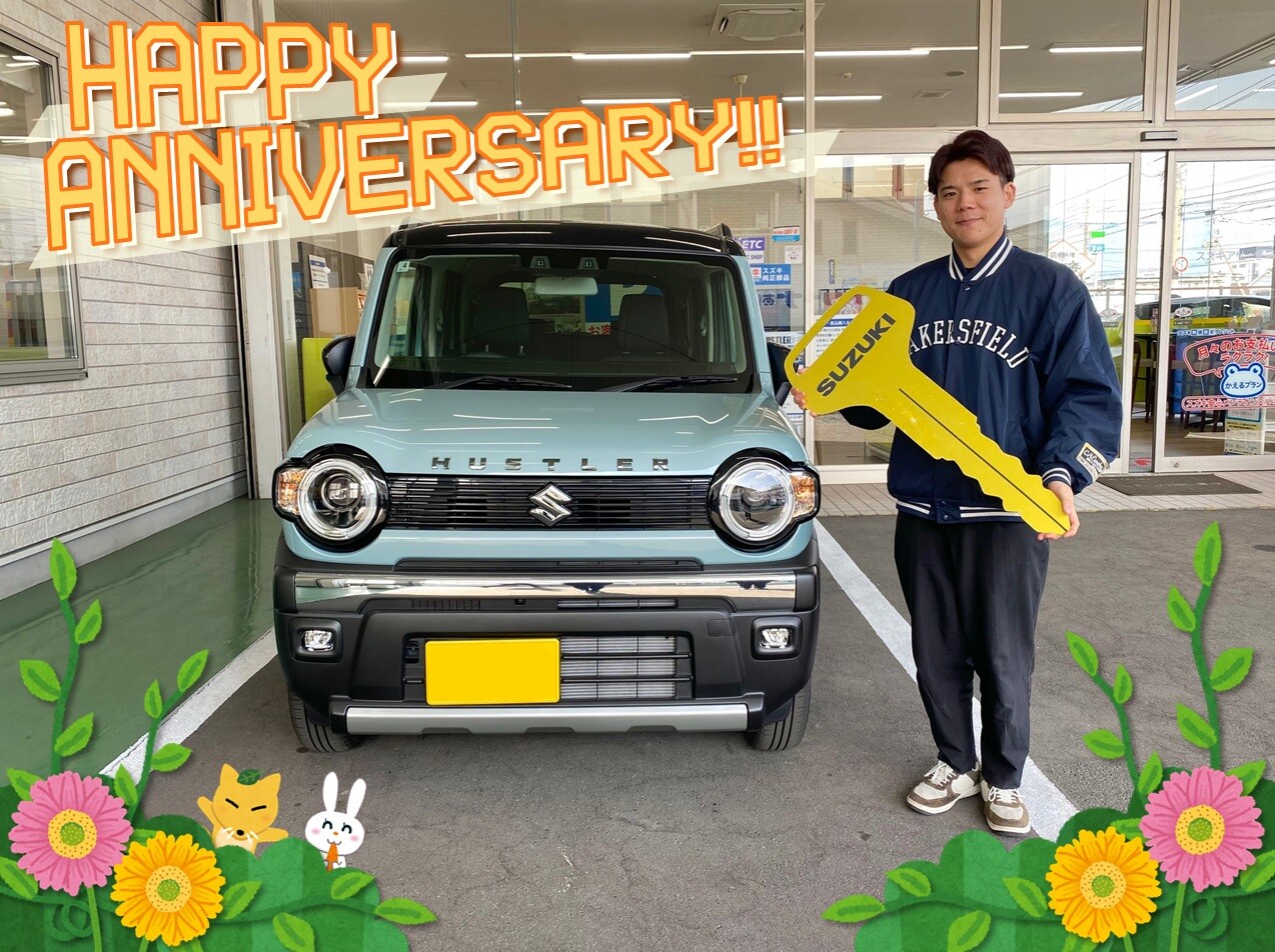 納車ギャラリー 2026.04.20 A様ご納車おめでとうございます! 愛車 ハスラー お客様 A様 グレード タフワイルド ボディーカラー オフブルーメタリック ブラック2トーン 皆さま、いつもあけぼのブログをご覧いただき 誠にありがとうございます この度A様にハスラーを ご納車させていただきました A様は今回初めてのお車購入ということで ハスラーをお選びいただきました 通勤にプライベートに頼りになること間違いなしの ハスラーで素敵なカーライフをお過ごしください A様この度はご納車おめでとうございます 今後ともよろしくお願いいたします