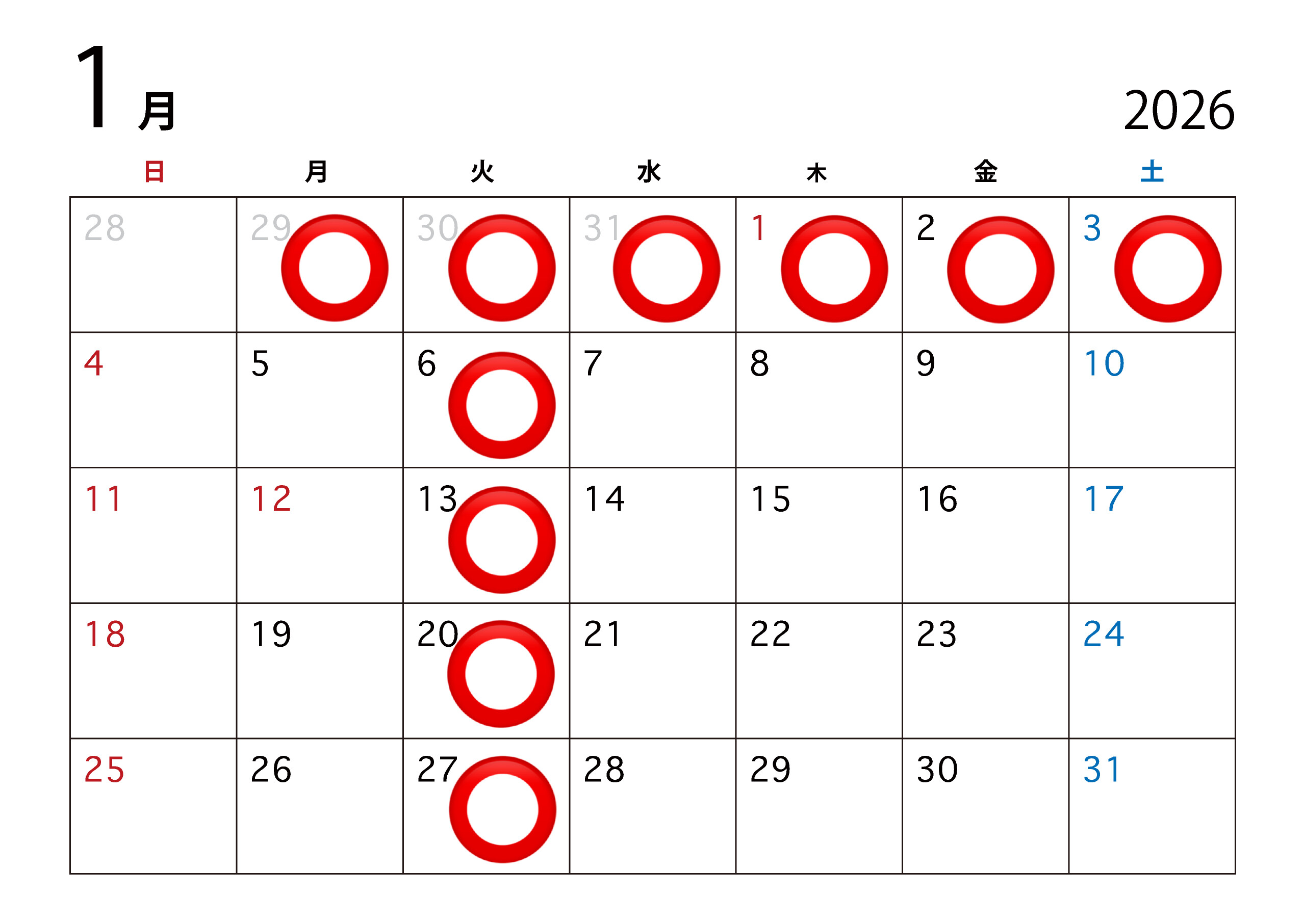 今回は来年1月の定休日のご案内です。