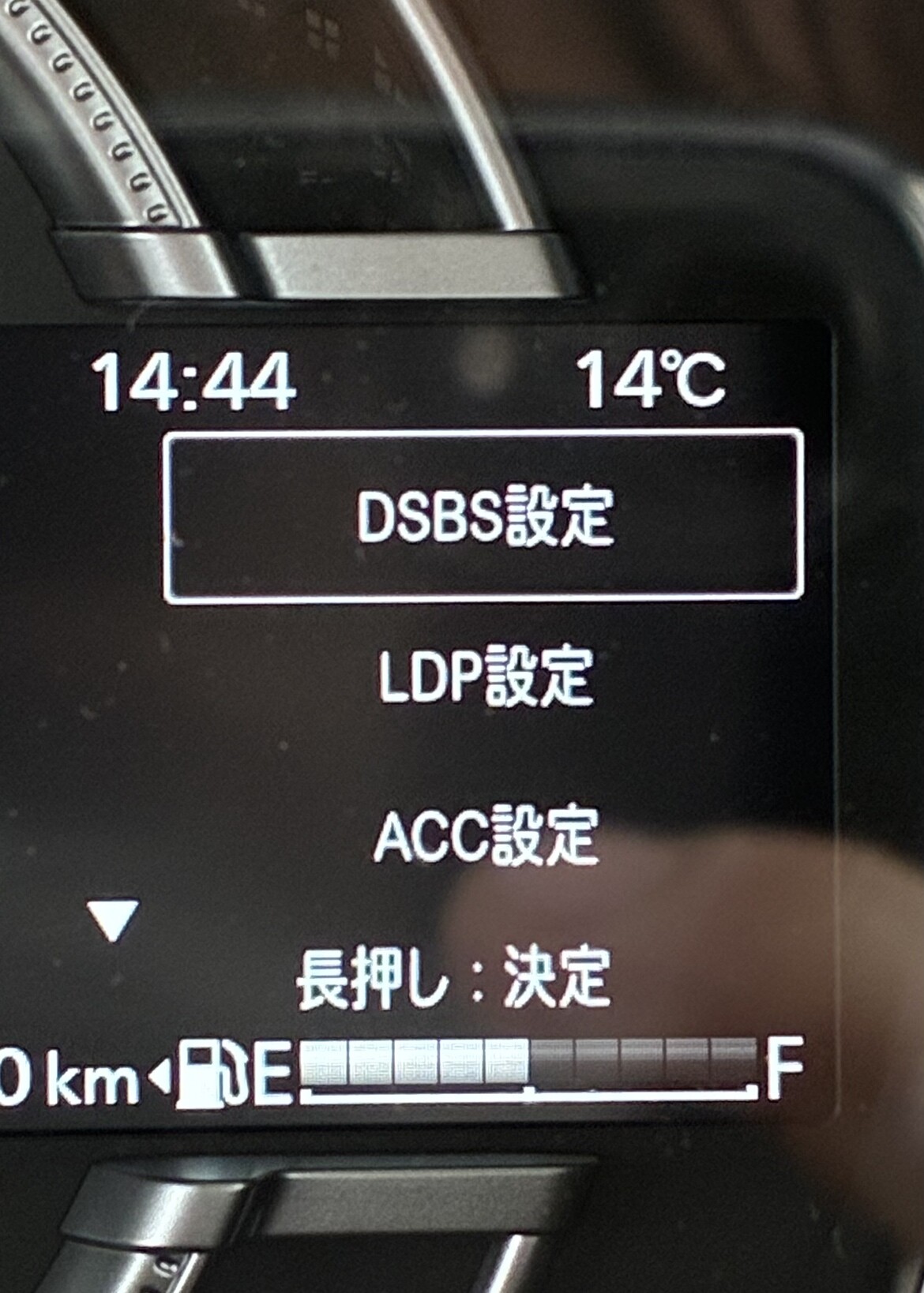 スペーシアはハンドルスイッチ「← →」で歯車マークのアイコンまで移動。