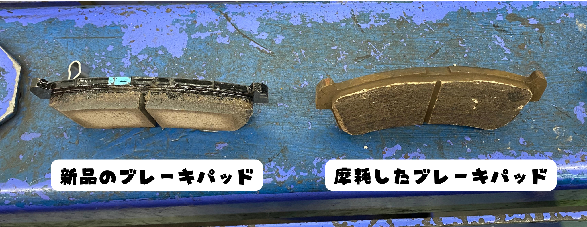左が新品、右が摩耗したブレーキパッドです。