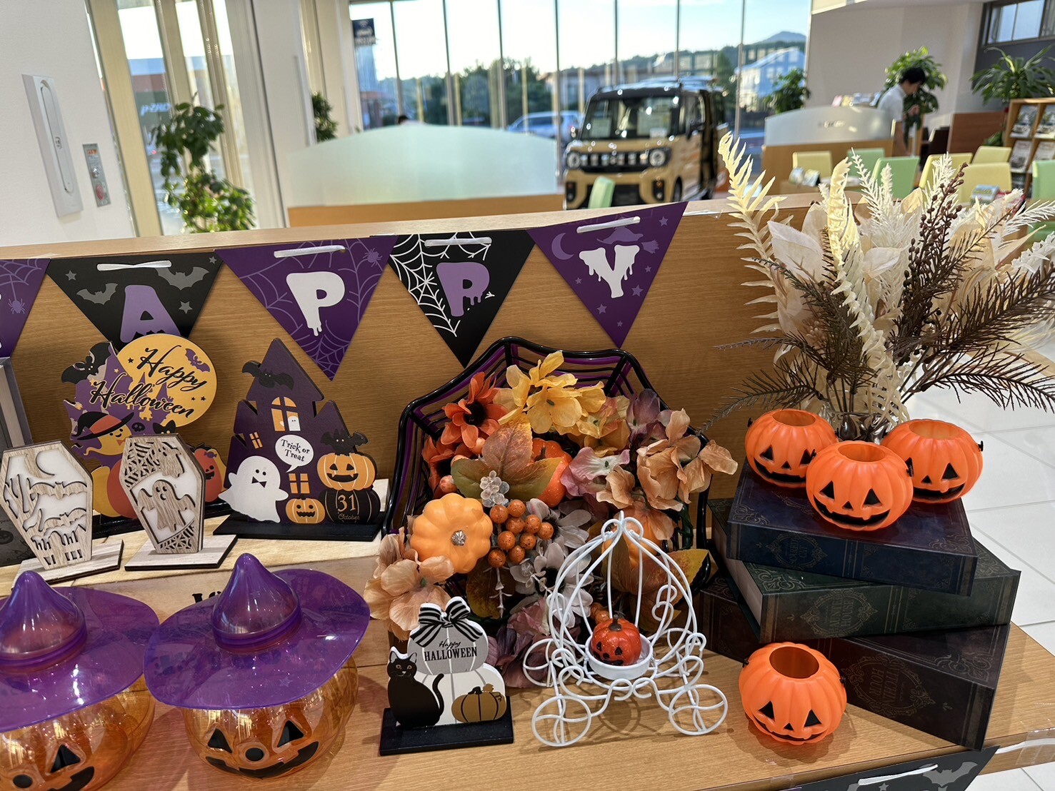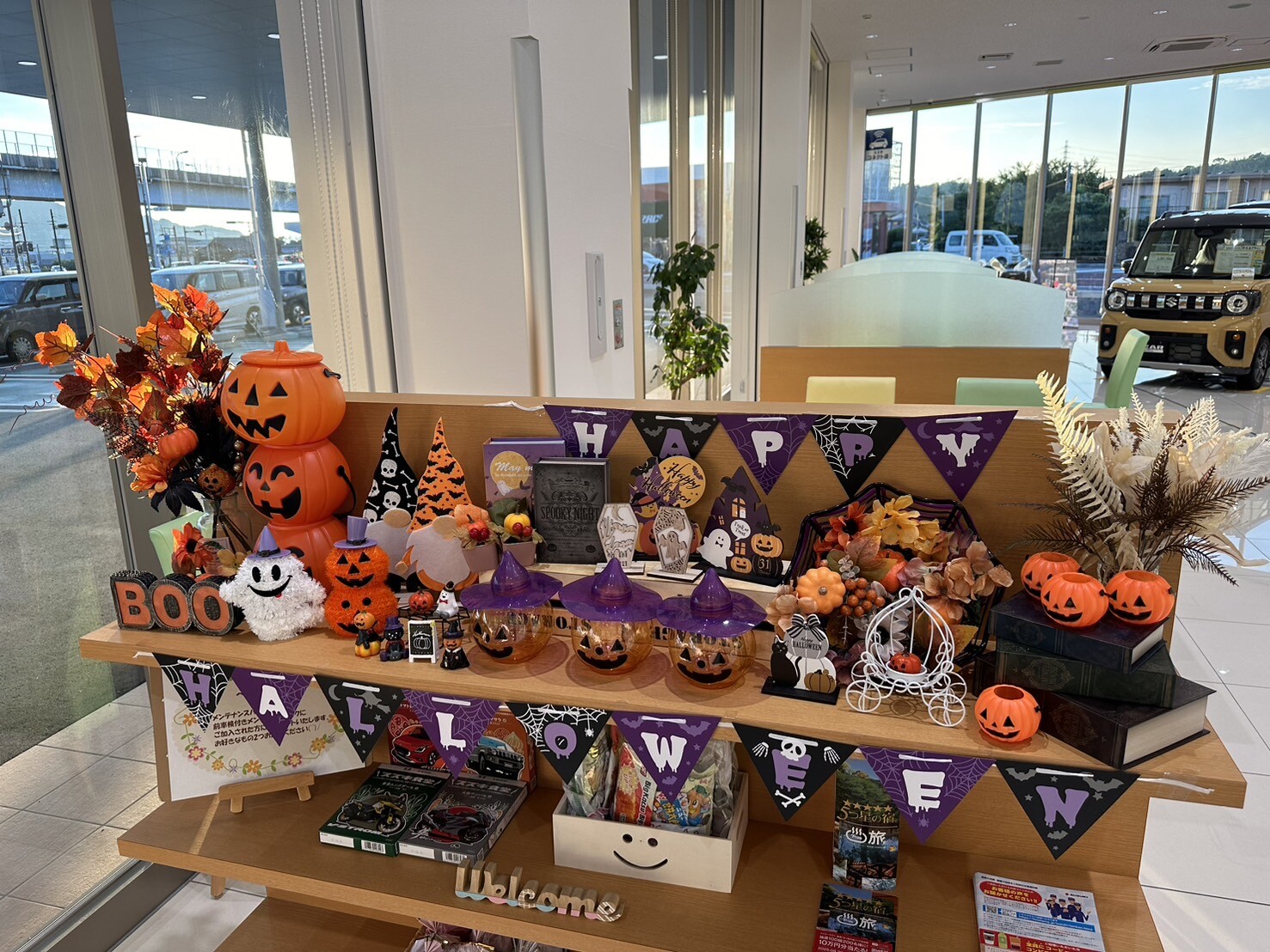 その他 2025.09.29 秋のショールーム飾りつけ(*^▽^*) 皆様こんにちは スズキアリーナ徳山店の タカセです もう今月も終わり 今年も残すところあと3か月・・・ ついこの間 お正月を迎えたばかりに感じますが・・・ 一年過ぎるの早すぎますよね 今年も秋の期間は短そうですが 当店ショールーム、 秋仕様になっております ハッピーハロウィン お子様向けに お菓子の詰め合わせご準備しております 当店スタッフに トリックオアトリート! 言ってみてくださいね では飾りつけのご紹介です 小物めちゃくちゃかわいいです 10月末までの 期間限定でございます 11月になると クリスマス仕様になる予定ですので こちらもお楽しみに またブログにも載せようと思いますので ブログチェックもよろしくお願いします そして、ぜひ!ぜひ! 写真撮影にご来店ください 皆様のご来店お待ちしております