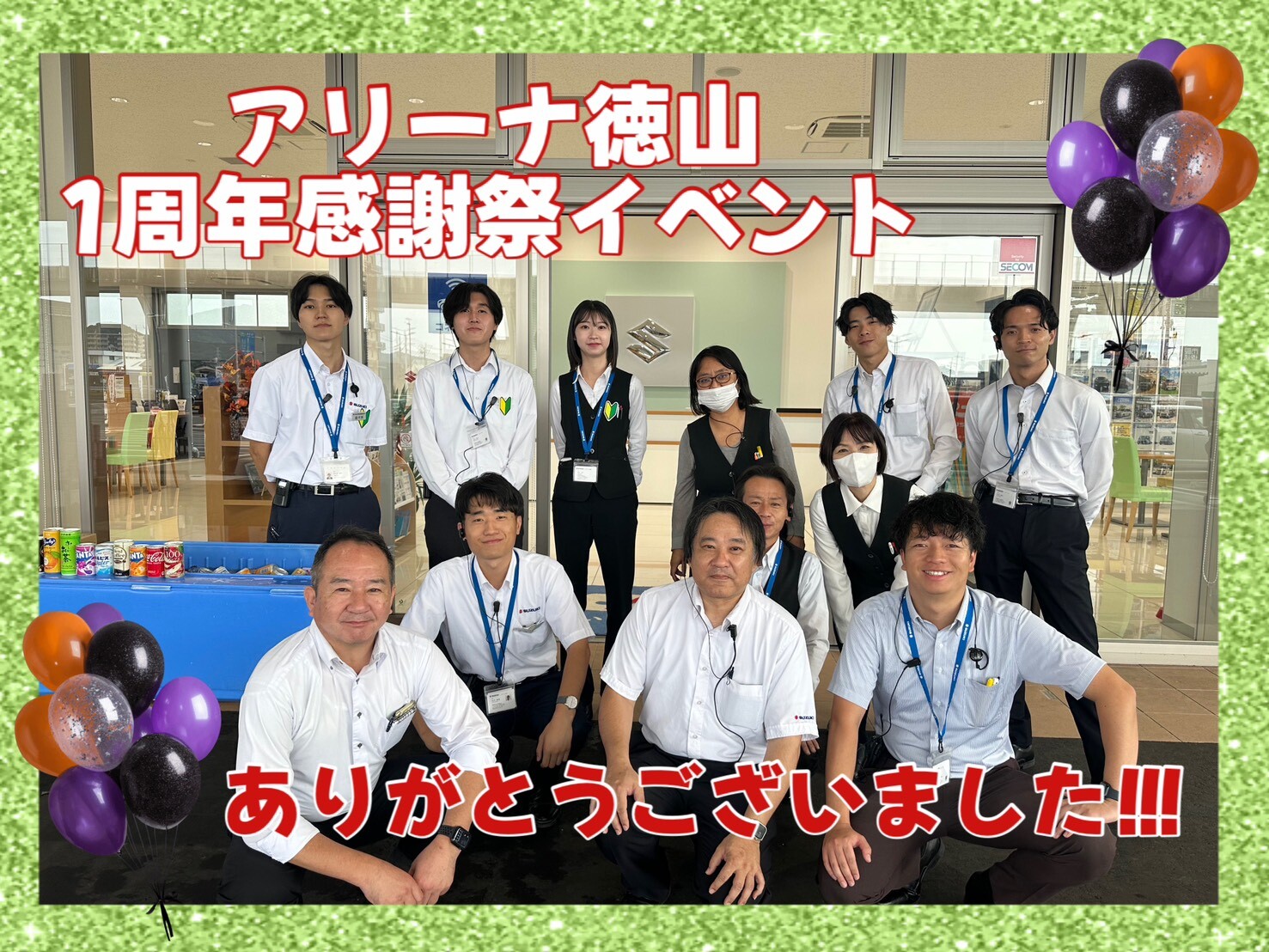 その他 2025.10.20 【徳山1周年感謝祭イベント】お越しいただいた皆様ありがとうございました♡ 皆さまこんにちは スズキアリーナ徳山店 タカセです 週末、当店では 1周年感謝祭イベントを実施していました その際の様子を ご紹介できればお思います お忙しい中足を運んでくださった皆様 ありがとうございました まずは朝のミーティングから 飲み物の準備もばっちり エブリイ大活躍 たっくさんの ドリンクを運べました サイコロ出た目の数だけ トイレットロールプレゼント 大反響により 2日目午後には売り切れてしまいました 申し訳ございません JAF子供免許証 保険診断 セニアカー展示 キッチンカー1日目 キッチンカー2日目 お子様向けイベント お菓子釣り 射的 これからの時期大活躍 スタッドレスタイヤの販売 わんちゃんのご来店もありました かわいい 急に雨が降ったり 暑くなってしまったり・・ 大変だった駐車場係の皆様 本当にありがとうございました アリーナ徳山店 2年目もよろしくお願いします これからも引き続き 皆様のご来店、 お待ちしております ================ 感謝祭イベント様子を 当社インスタグラムに投稿予定です 「スズキ自販山口」で検索いただき フォローよろしくお願いします