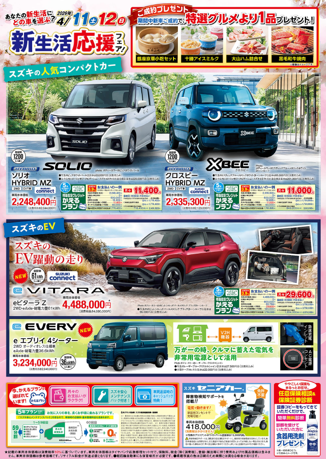 4月11日(土)12日(日)はスズキへ!新生活応援フェア開催します!