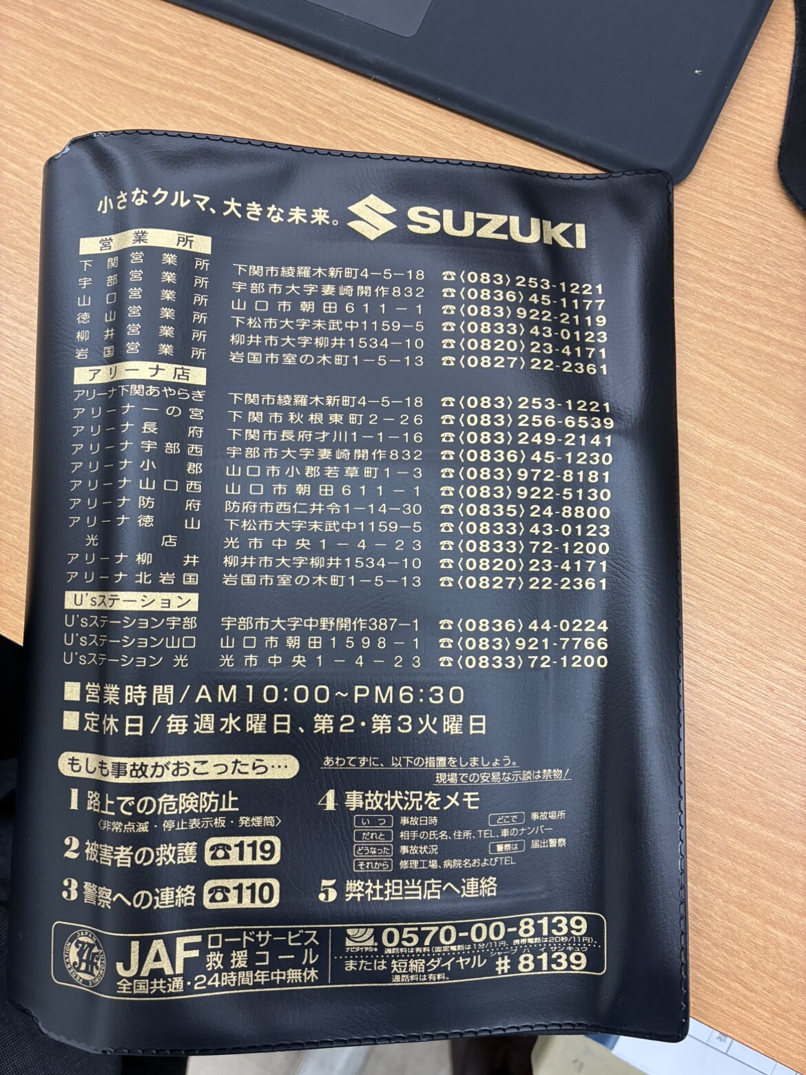 ↑スズキ自販山口の冊子。購入されたお店によって冊子のデザインは異なります。