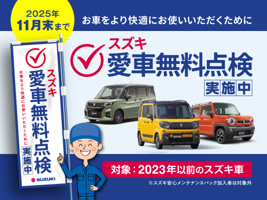 イベント/キャンペーン 2025.11.07 11月8日・9日はスズキの日♪ キャンペーン期間:2025.11.08~2025.11.09 店舗ブログご覧いただき ありがとうざいます 11月に入り朝晩は冷え込みますが まだまだ日中は暖かくて過ごしやすいですね~ そんな中・・・ 11月8日(土) 11月9日(日) スズキの日開催しますよーーー 新車ご成約特典 ええやんこれパックがパワーアップ 6つのパックから お安くお求めできます。 エンブレムほしいけど…って思ってる方! これを使うと20%off 現行スペーシア購入応援キャンペーン 成約プレゼント 【グルメカタログギフト】 来場プレゼント 【エマージェンシーボトル】 11月末まで 愛車無料点検実施中です まだ実施していない方は この機会にご予約お待ちしております スズキアリーナ高松中央へ ぜひお越しください Instagramもチェックしてね
