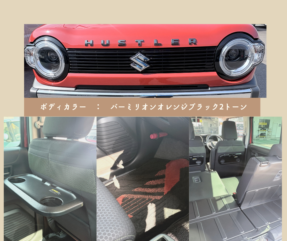 スタッフによるクルマ紹介 2026.02.16 人気のハスラー☆ターボ車★タフワイルド 車名 ハスラー タフワイルド 店舗ご覧いただき ありがとうございます おすすめ中古車のご紹介です ハスラータフワイルドターボ 初年度 2024年6月 車検 2027年6月 走行距離 5,400km 後席にはドリンクホルダー装備 停車時にちょっとした休憩も… フロアマットはおしゃれな柄付き 後席倒すと大きい荷物も乗せられます 全方位カメラ付きで バック駐車もスムーズに ターボ車なので走りもgood 詳しくはこちら カーセンサー モビリティ 気になる方はお早めに~