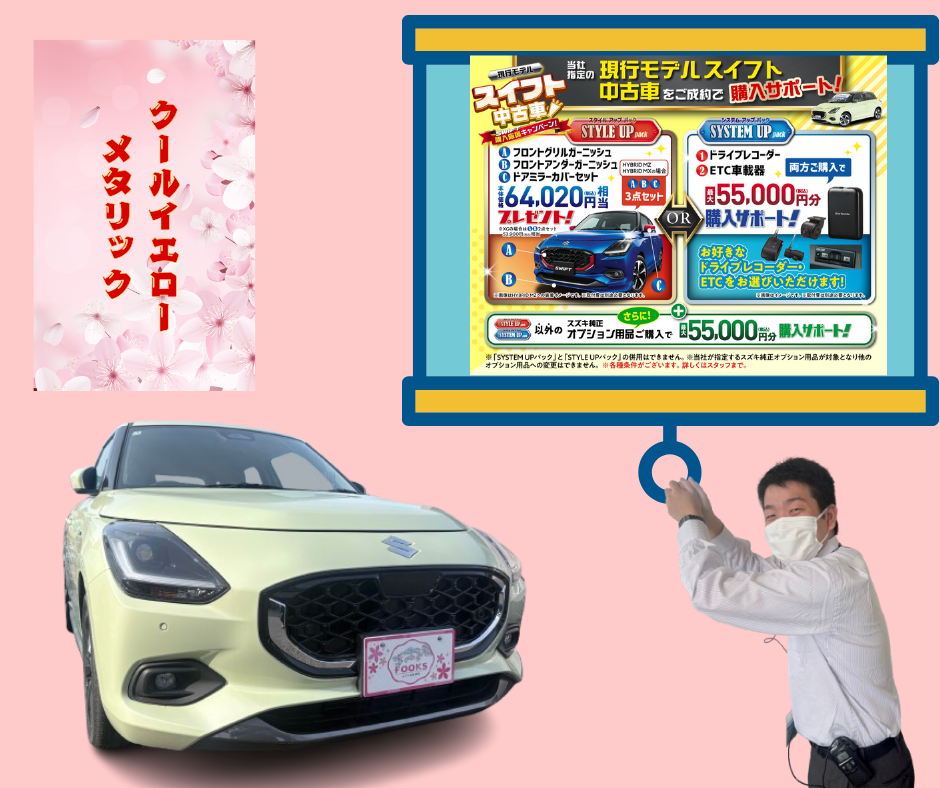 現行モデルスイフト中古車購入サポート