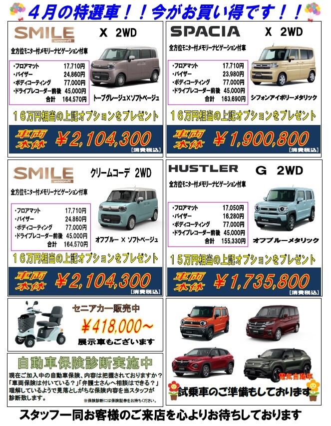 本日は4月のお買い得車のご紹介です