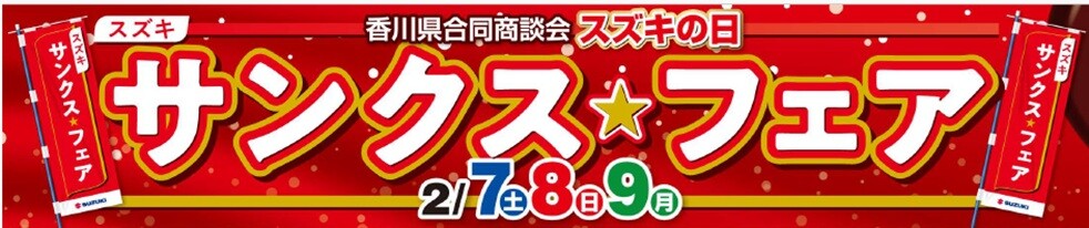 イベント/キャンペーン 2026.02.05 ★2月7(土)8(日)9(月)はサンクス☆フェアー開催 ※このイベントは終了しました アリーナ善通寺 店長の福田です。 3日間だけのオトクなご来場プレゼント&ご成約プレゼントをご準備しております 特典盛りだくさんのイベントとなっております。 また、25才以下のお客様で、初めてのお車をご検討頂いてる方は・・・・ スーツのプレゼントがあります。 詳しい内容は、店頭スタッフにお問合せ下さい。 オトクいっぱいの3日間です。ぜひ!アリーナ善通寺へお越しください。 スタッフ一同、みなさまのご来店をお待ちしております。