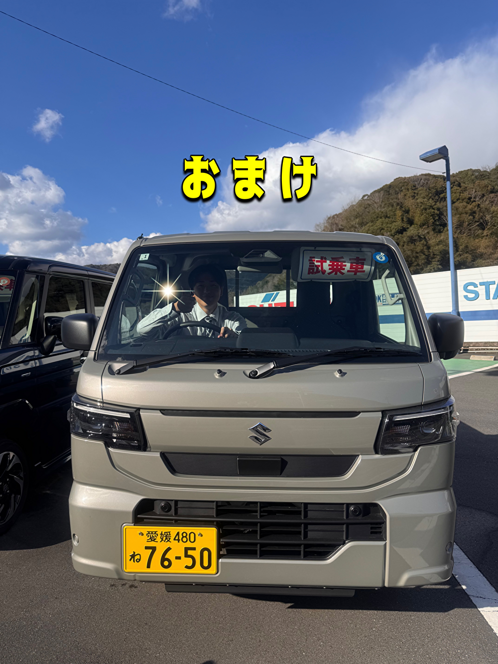新車情報 2026.03.14 いい顔になれます!!! みなさんこんにちは!! 今回は 当店に置いております 試乗車をご紹介します!! NEW CARRY グレード:KC 農繁 ボディカラー:モスグレーメタリック 仕様:高低2段切替え式パートタイム4WD 週末は展示会もしております!! 14日(土)15日(日) たくさんのご来店お待ちしております 最後におまけ(笑) シャキーン