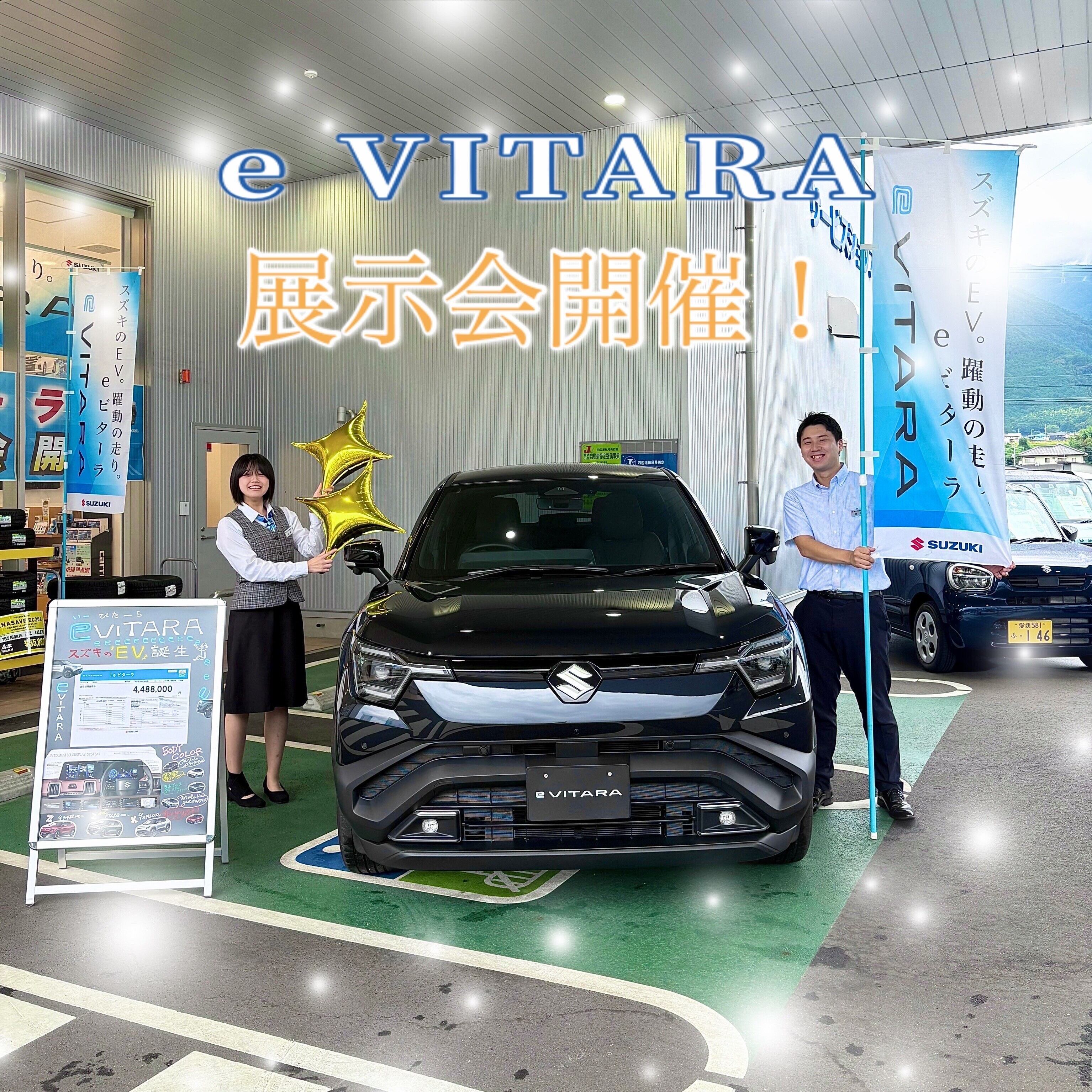 新車情報 2025.10.20 e VITARA来ました! みなさんこんにちわ いつもスズキアリーナ萩生店のブログを ご覧いただき誠にありがとうございます(^^♪ ついに萩生に来ました! e VITARA 内装はこんな感じ!! 私も乗ってみました! この展示会は明日までなので ぜひ見に来てください!! みなさまのご来店 心よりお待ちしております