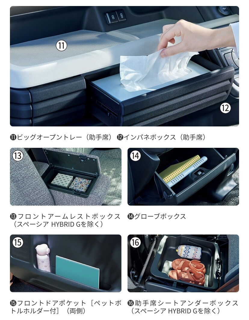 広々とした車内に、あちらこちらにある沢山の収納スペース